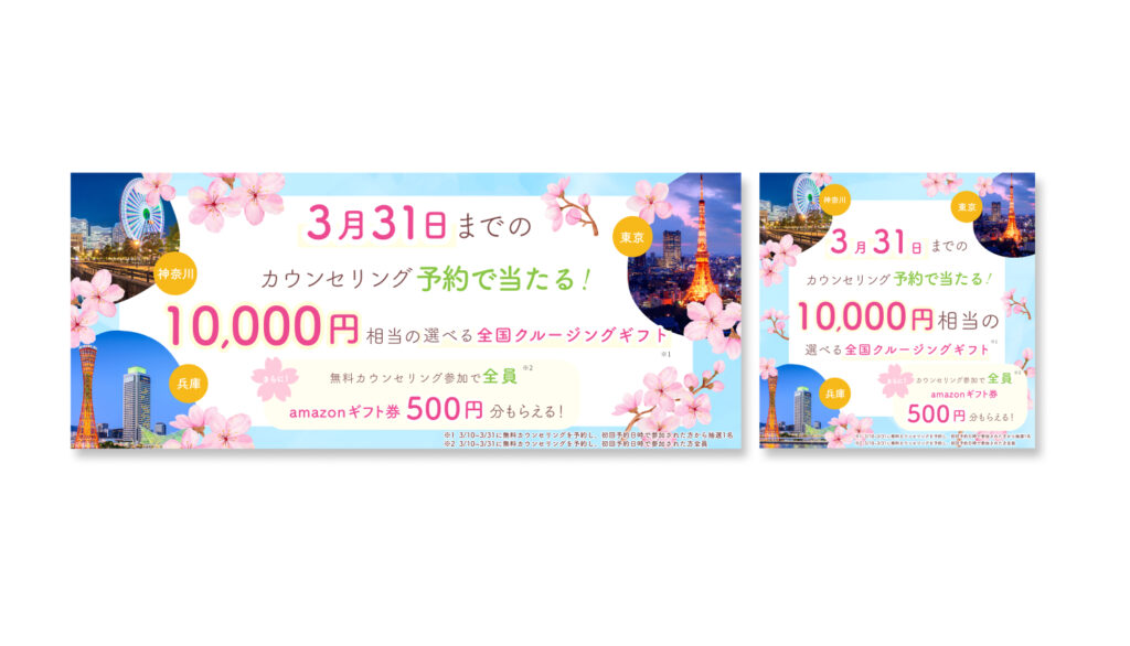 バナー作成 2025年9月4日 最終更新日時 : 2025年9月4日 saito_3110 【製作時間】3時間【使用ソフト】Photoshop・illustrator【担当業務】デザイン【意識した亊】華やかなデザインになるよう意識しました。
